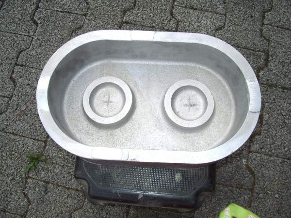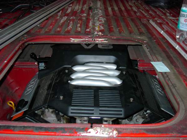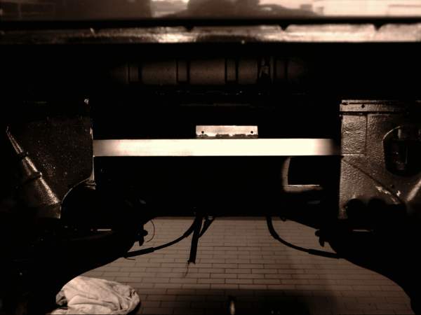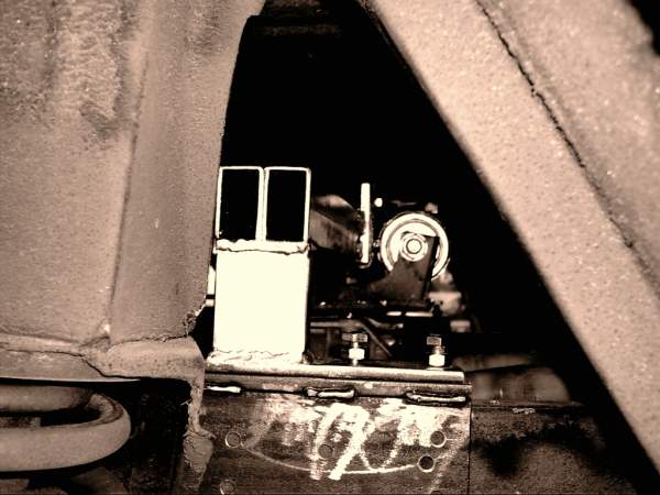Der Motor ist schön hoch. Das Loch in der Ladefläche ist nicht in der Mitte.